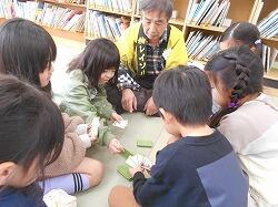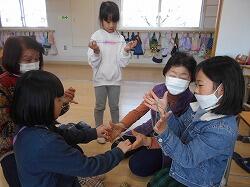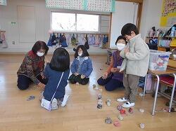 さっそく、けん玉、すごろく、こま、あやとり、ふくわらい、だるま落とし、お手玉と遊びごとにわかれて技を教えてもらったり、ゲームを楽しんだり・・・・