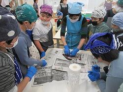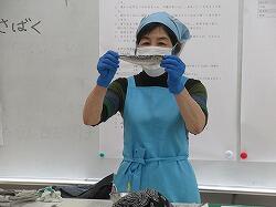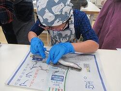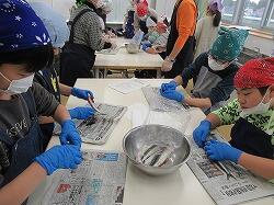 予想に反して、魚を手に取ることを嫌がることがなく、みんな手でいわしをさばいていきます。大人も初めての経験、新鮮ないわしを手さばきでおろしました。