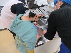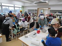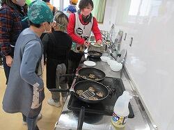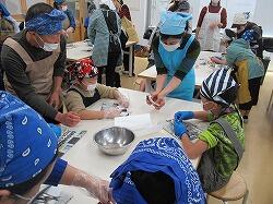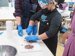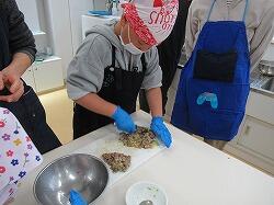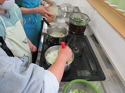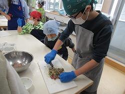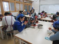 包丁を使っていますが、なかなかの手さばきで、細かくおろしていきます。低学年もできる範囲で包丁を使っていきました。