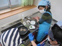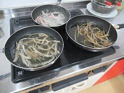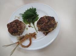 いよいよ、サンガ焼き、つみれ汁に取り掛かります。サンガ焼きは、手にオイルを塗ってハンバーグのような形に整えて、フライパンで焼きます。