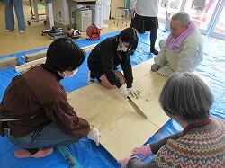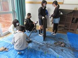 6年生の土小観光協会昔話課は、増尾町会の民話の里プロジェクトの皆さんと一緒に、「雪をふらせたきつね」のお話の看板づくりを、早帰りだった今日の午後に行いました。