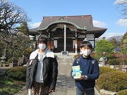 萬福寺と妙蓮寺に届けに、手作りの雑巾を届けました。