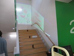 ロッカーの中に映してみる 階段の壁を使って2面照射してみる