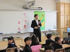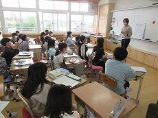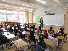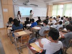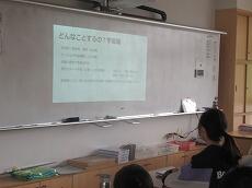 階段をあがり6年生の教室を見ると、1年間どのような学びをしていくのか、見通しを持つための授業を2クラス同時に一人の先生で行っていました。総合的な学習、命の学習、歴史との出会い、お金についての学び・・・どれも大人になっていくのに欠かせない学びです。