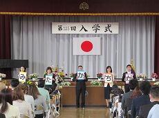 校門脇の八重桜が満開となり、南風に少しずつ花びらを翻らせる朝、125回目の入学式を迎えました。