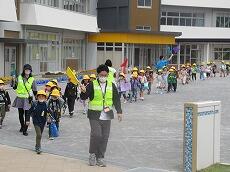 お昼前になると1年生が下校していきます。来週からは給食が始まり、1年生も午後まで学習をしますね。