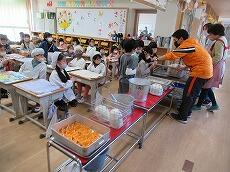 今日から1年生の給食が始まりました。最初は子供が大好きなカレーライス。学校のカレーライスは100%手作りカレーで、香辛料の組み合わせも絶妙で、市販品では味わえない味です。