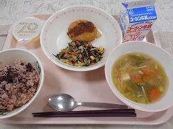 お赤飯や柏市産のメンチカツにかぶのお味噌汁、梨ゼリーには70周年のロゴが入っていました。
