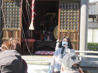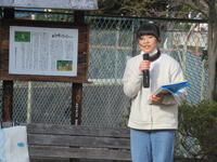 妙見堂跡で、妙見堂の説明とまれいどの民話、こちらも堂々とした説明となり、寒い中参加してよかったという気持ちになります。
