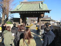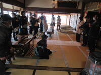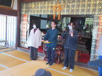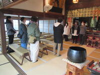 少林寺では住職さんのお取り計らいで、ストーブで暖まった本堂での説明。本堂は移築して100年以上という江戸時代からの柱に囲まれながら、お寺の歴史と魅力が語られました。