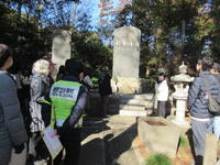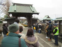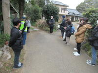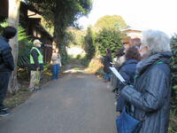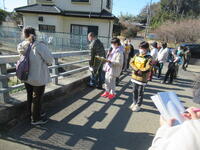 午後のBコースは13時出発です。こちらは申し込み者がたくさんで約20名ほどいらっしゃり、地域誌の記者さんも同行しました。最初にツアーの全体、百年桜 少林寺、四郎兵衛坂、増尾城址公園、宮坂、民話と、こちらは少しツアー内容が多いコースです。
