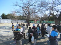 最初は校庭の百年桜の前で百年桜の魅力についての説明です。