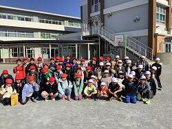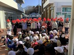 土っ子デッキで2校があいさつをした後は、大きく3つのグループに分かれて活動します。ふるさと資料室を実際に見るグループ、ふるさと資料室の説明を聞くグループ、土小の校内や校庭を見学したり遊んだりするグループに分かれての活動です。