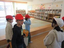 土小の自慢の図書館を案内しているグループも・・・土っ子デッキでくつろぐグループも
