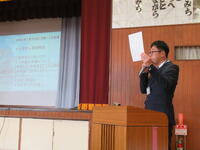 校長からは、土小の歴史、校長の教育観「教育は子供の今を育てつつ、未来社会を創る仕事」そして現行学習指導要領の学習観、それに対応する学校の授業改善、保護者の子供への接し方など、学校ビジョンに関する話がありました。教頭先生、1年担任の先生、特別支援コーディネータの先生からは、入学後の生活に関する説明や具体的な手続き等についての説明がありました。