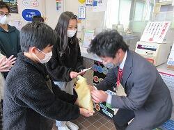 会長さんから局長さんに向けて、集めた経緯、被災地救済に利用してほしいことなどが伝えられ、募金で重たくなった袋をお渡ししました。