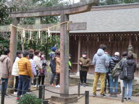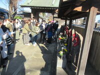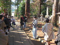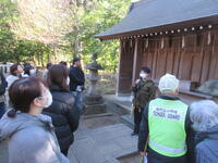 戦没者慰霊碑 脇殿では何カ所もの神社のお札があり、そこに詣でることで厳島神社などの全国の神社に参拝したご利益があるとの説明に、ツアー客は一同に驚き・・・本殿の説明、そしてこの地に伝わる「疫病おんだし」の民話の素話を聞いて、800年以上も続く神社の歴史に触れました。