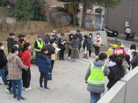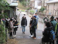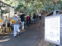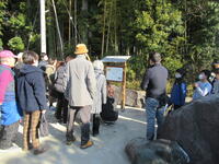 今日のBコースは、とても寒い中での出発となりました。百年桜と土小学校の説明から始まり、少林寺へと歩みを進めます。