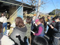 今日は比較的あたたかい朝を迎え、ツアーも2日目。今日はCコースで、満福寺、民話の里、まれいど、農家直売所、廣幡八幡宮、宮坂を回るコース。ツアーの人気が高まり20人以上の参加者でスタートしました。