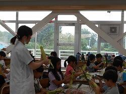 3年生が給食の「トウモロコシ」の皮むきをしました。