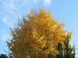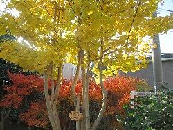 校門脇のイチョウは満天星つつじとの紅葉の競演、体育倉庫裏のおおきなイチョウは鮮やかに色づいています。