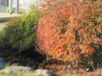 職員室前の池の周囲、土のリゾートにある「かえで」は、今年の猛暑の影響か、色づきがしないうちに散っていきそうです。