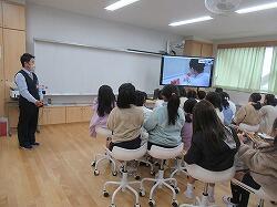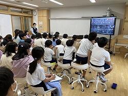 その後、3年生の「ヤクルトオンライン工場見学」の授業を参観しました。本物に学ぶことが一番子供たちにとってはよいことです。工場見学も実際に行く以上にオンラインの方が工場の中の中まで見ることができます。ヤクルトから、社員の方が教室に来てくださり、福島工場とオンラインでつないでの見学です。