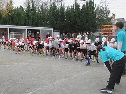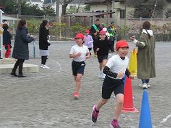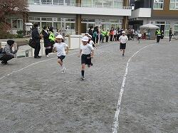 高学年と一緒に校長先生も走ります。でも6年生は速い速い・・・校長先生が最終ランナーで8分でゴール。