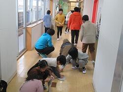 子供たちが午前中に大掃除をして、午後からは普段学校を利用している地域団体の方々によるクリーンボランティア活動が実施され、18名の方々が参加をして、廊下や階段を中心に、ぴっかぴっかに仕上げてくださいました。