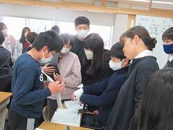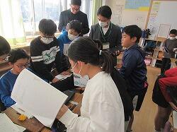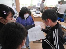 自分たちが分析した結果を友達に説明し、友達からは分析の視点がよいかどうか批判的思考で意見をもらうという交流を進めていました。