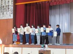 2学期の様々な活動で優れた成績をおさめた人の表彰がありました。