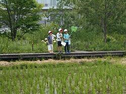 田んぼゾーン、湿地ゾーン、ザリガニ釣りをグループで順番に回ります。