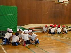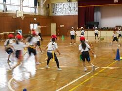 体育館では、楽しくゲームに取り組んでいます。作戦会議も真剣です。
