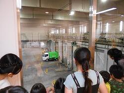 クリーンセンターでは収集車がちょうどやってきて、ごみピットにごみを投入するところを見ることができました。