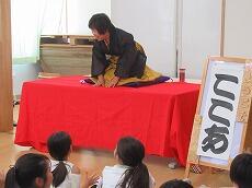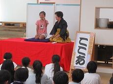 昨年度も来校してくださいました落語家の「ここあ」さんが、今年も4年生のために来校してくださいました。
