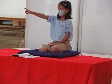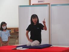 座禅教室は、学校近くの少林寺。今年は8名の参加で人数が絞られていたため、集中力もあがって最初から20分間という長い時間の座禅ができています。本堂に吹いてくる風は、セミの声をのせて少し涼しげに吹いてきます。何も考えないで無になるということが、こんなに難しいことなのですね。じっと自分と向き合う時間ができたかな?