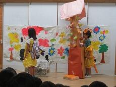 2年生の国語の教材「きつねのおきゃくさま」、きつねの心の中がだんだん変わっていく様子を、ひよこ、あひる、うさぎとの出会いとの関係で、文章から感じ取ったことを、それぞれのクラスが劇にして発表をし合いました。