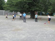 大人の手が入ると、子供たちの力も引き出されて、いつもよりもきれいな仕上がりになっていきます。私も昇降口の窓をきれいにさせてもらいました。背中いっぱいに汗をかきながら、きれいな学校をいつまでもきれいに保つためには、子供と大人の協力が大切だと感じながら、1学期の汚れをみんなで落としました。