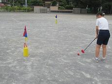 スナックゴルフは美里ゴルフクラブからいつも指導してくださるプロゴルファーの方が来て、百年桜の日陰を上手に利用しながら、ゴルフを楽しく教えてくださいます。