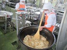 火を使い始める10時半から11時頃にかけて、給食室に入っていくと、炊飯コーナー付近は45度、その他の場所も37度という気温の中で、作業をされています。