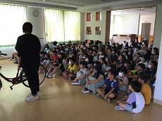 中学年と高学年は自転車の乗り方や安全ルールについて学びました。自転車のヘルメットが着用義務になっています。中学年くらいまでは持っている率が高いようですが、高学年になるにつれて低くなります。夏休み中の安全は、自分のことは自分で守るという気持ちを大切に、家庭でもご指導をよろしくお願いします。