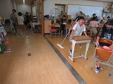 今日の5時間目は大掃除、全校で1学期の汚れを落とす掃除をしました。昨日のLINEで掃除ボランティアを急遽募集したところ、暑い中にも関わらず10名の皆さん、中には卒業をした中学生もお母さんと一緒に参加してくださり、子供たちと一緒に汗を流してくださいました。