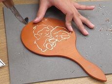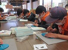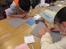 日光彫をしながら、「おばあちゃんにプレゼントするんだ」「お母さんにあげようと思う」と口々に言いながら彫っていきます。