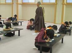 短いお経ですが、二枚写経をします。お経を書いたあと、願い事と名前を書きます。一枚は輪王寺に願い事と一緒にお納めして、一枚は持ち帰ります。15分くらいで1枚を書き上げますが、ずっと正座をしてる足がだんだんしびれてきますが、集中して書いていきます。