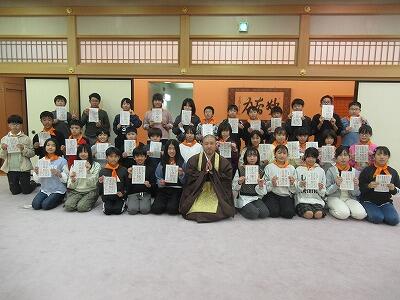 書き上げたあとは、お坊さんも一緒に記念写真を撮りました。