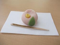 椿をあしらった和菓子をいただき、和菓子はどうやって食べるのか、作法も教えてくださいました。