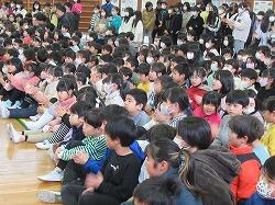 yoasobiのヒット曲「アイドル」をみんなで歌おうという企画を吹奏楽部が提案して実現しました。今日の業間休みに体育館に続々と子供たちが集まります。吹奏楽部の演奏で一緒に「アイドル」を歌うという企画です。
