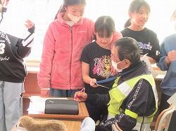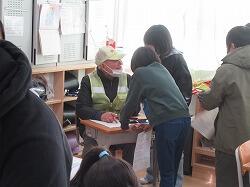まず最初に子供たちから日頃の見回り活動や、総合の時間の支援に対するお礼のメッセージと、作成した安全マップを贈呈させていただきました。