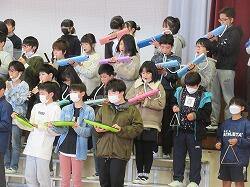今週末には6年生を送る会を控えています。いよいよ卒業に向けてのカウントダウンに入っています。今日は卒業生が保護者への感謝を伝える感謝の会が開かれました。最初は、合奏からスタート。曲名は「風をきって」・・・