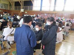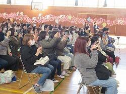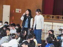 吹奏楽部の演奏するアイドルに合わせて、みんなで口ずさみながら楽しいひと時でした。外は雨でしたが、体育館は晴れるやです。初めての企画でしたが、楽しかったですね。